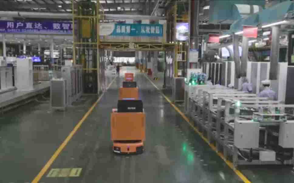 为车载冰箱物流配送打造的智能解决方案,,,,包含产中物流通过潜伏举升AMR搬运至线边,,,产后成品物流智能仓储,,流程包含产中物流智能齐套入库,,,线边安灯叫料AMR智能配送至线边,,成品入库、、、、出库,,,通过无人堆高车机器人,,,,智能仓储管理替代人工作业管理,,,,实现更高存储、、、、更高效率、、、、更具柔性化的解决方案。。。